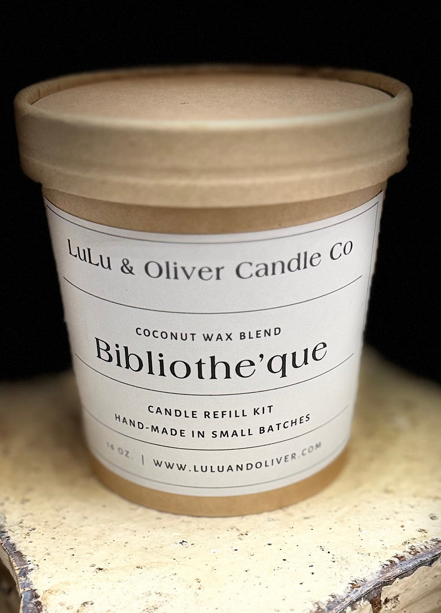 DIY candle refill kits come in a 16 oz and 32 oz sizes, and are designed for LuLu & Oliver Concrete Candles and Dough Bowls
